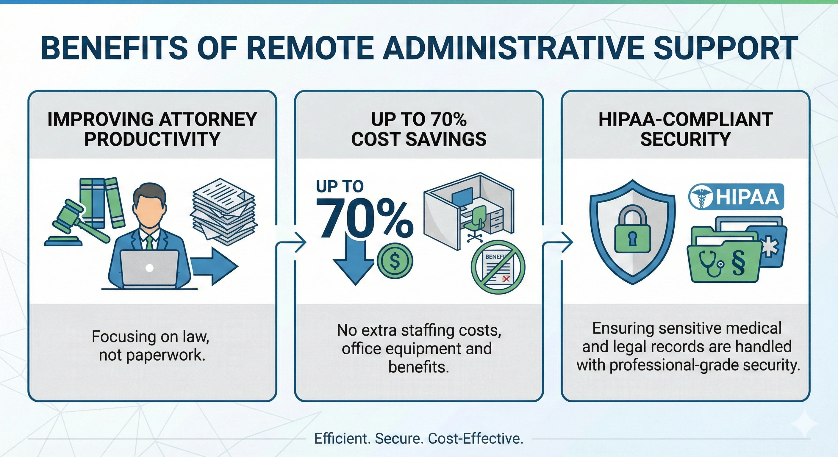 By outsourcing administrative work to pre-vetted, U.S. law-experienced professionals, law firms gain reliable support without compromising quality or confidentiality.